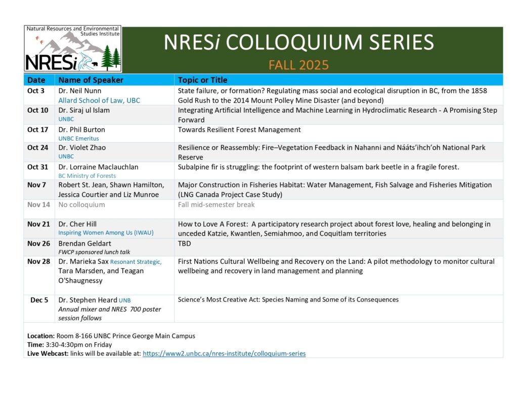 UNBC NRESi Colloquium Schedule 2025